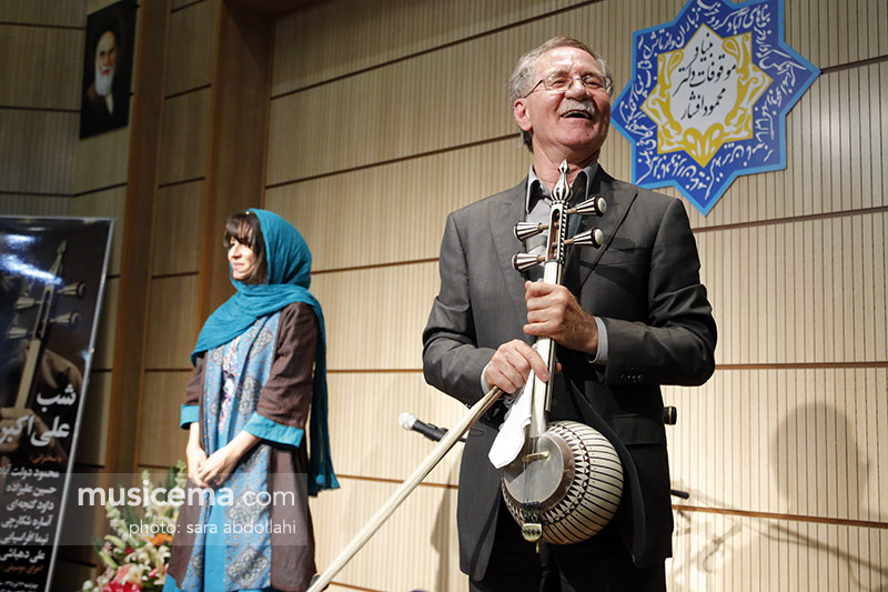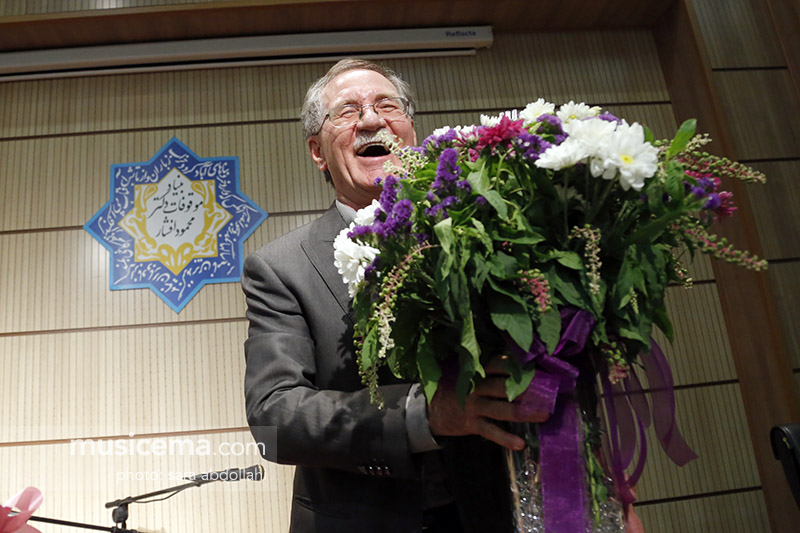 او از علیزاده به عنوان برادرش، از داود گنجهای به عنوان کسی که اولین بار صدای کمانچهاش را شنید، محمد مقدسی که برایش مثل بت بود: » زمانی که به دانشگاه آمدم فقط یک سری ترانه محلی را میزدم و برای اولین بار موسیقی دستگاهی به گوشم میخورد. شما امروز مثل یک آینه خودم را به من نشان دادید و از شما متشکرم که سیاهیهای من را ندیدید و فقط رنگها و سفیدیهای من را دیدید و من چقدر خوشبختم که یک عمر با رو سفیدی و سربلندی زندگی کردهام. مزدی که شما به من دادید همین جمعیست که برتر از هر چیزی است. من از کودکی چون با ایلات و عشایر زندگی کردهام شوق و امید را از آنها آموختهام. کسانی که در زمان کوچ تمام زندگیشان به اندازه بار دو تا الاغ و قاطر نمیشود، ولی وقتی با آنها زندگی میکنید متوجه میشوید که سرشار از طنز، هجو، فکاهی، شعر و ترانه هستند و مثل اینکه در آسمانها میرقصند، اینها با امید و شوق زندگی میکنند. ایلات و عشایر با خطرات بسیار عجیبی زندگی میکنند که شاید شما باورتان نشود، ولی به هرحال با دلیری زندگی میکنند و بدون هیچ گفتگویی این دلیری، جسارت، شهامت، غیرت، مردانگی و بخشندگی و پایداری را به شما منتقل میکنند.»