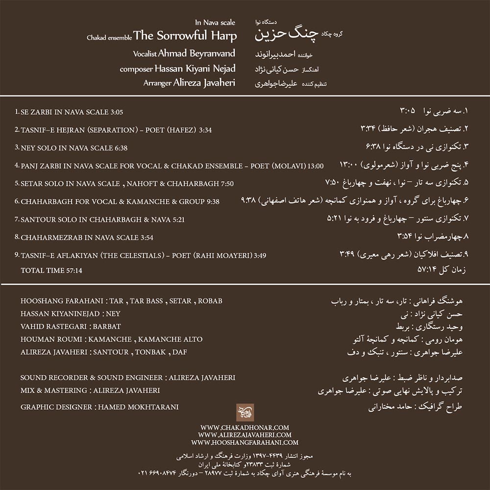 آلبوم چنگ حزین اثری است با خوانندگی احمد بیرانوند، آهنگسازی حسن کیانینژاد و تنظیمکنندگی علیرضا جواهری. این مجموعه شامل چهار آهنگ باکلام و پنج آهنگ بیکلام در سبک موسیقی کلاسیک ایرانی است. در قطعات باکلام و تصنیفها از سرودههای شاعران کهن و معاصر مثل حافظ، مولانا، هاتف اصفهانی و رهی معیری بهره گرفته شده است. از نوازندگان این اثر میتوان به هوشنگ فراهانی، حسن کیانی، وحید رستگاری، هومان رومی و علیرضا جواهری اشاره کرد.