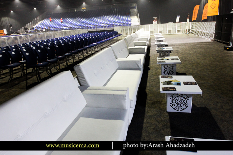 * از آنجایی که بلیتهای این برنامه به چهار کلاس تقسیم میشد، جلوی درب ورودی با توزیع دستبندهایی برای راحتی حضار این تفکیک صورت گرفت.