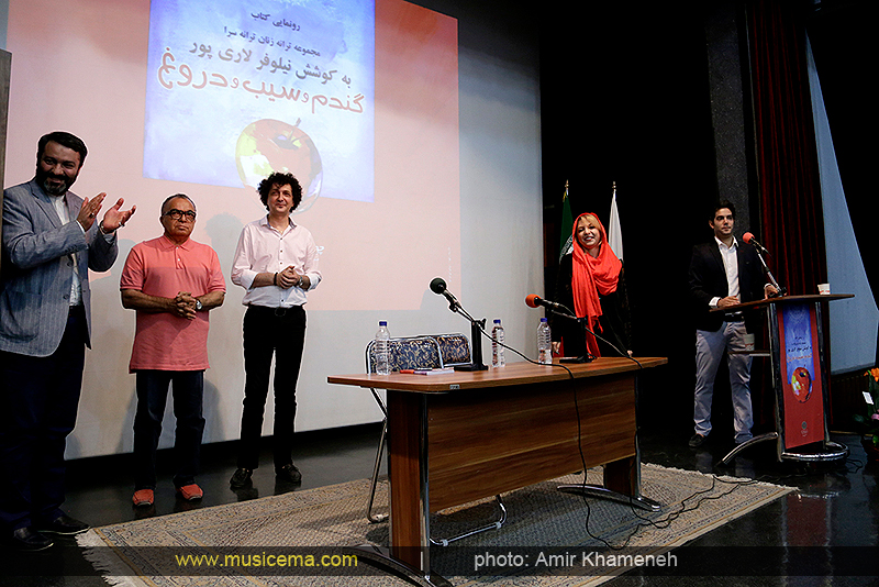 پس از آن نبویان از نیلوفر لاریپور (گردآورنده این مجموعه) و مهرداد نصرتی (آهنگساز و خواننده) دعوت کرد تا روی صحنه آمده و در مورد مجموعه «گندم و سیب و دروغ» صحبت کنند. لاریپور از چگونگی تولید و انگیزه خود از انتشار این کتاب توسط انتشارات «فصل پنجم» گفت: «در این سالها ترانههای فراوانی توسط بانوان ترانهسرا سروده شده که متأسفانه به دلایلی دیده نشدهاند. هدف من از گردآوری این مجموعه، کمک به دیده شدن این ترانهها بود و اینکه خانمها به تواناییهای خود باور داشته باشند.»