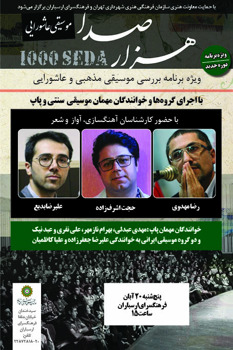 موسیقی ما - برنامه موسیقایی هزارصدا، به مناسبت تقارن با ایام ماه محرم و صفر، ویژهبرنامه عاشورایی برگزار میکند.